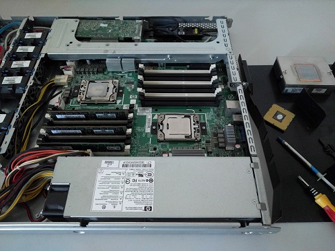 将机房闲置的HP DL160 G6升级,淘汰设备上低配CPU,由2块顶配CPU代替,从6核升级为12核,内存增至144G。